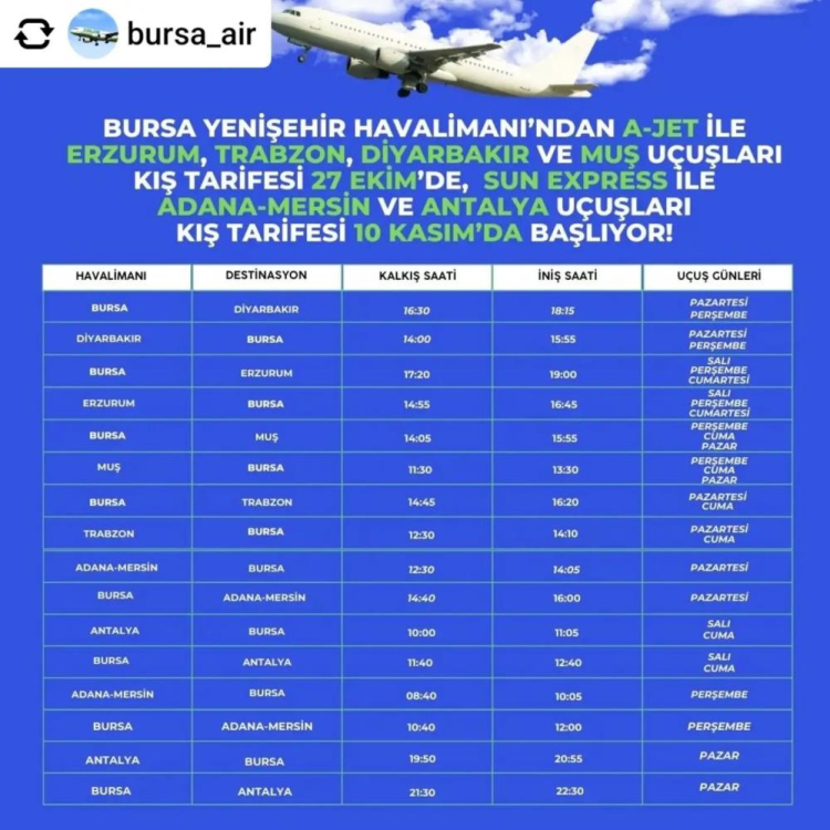 Bursa 27 Ekim'de uçacak