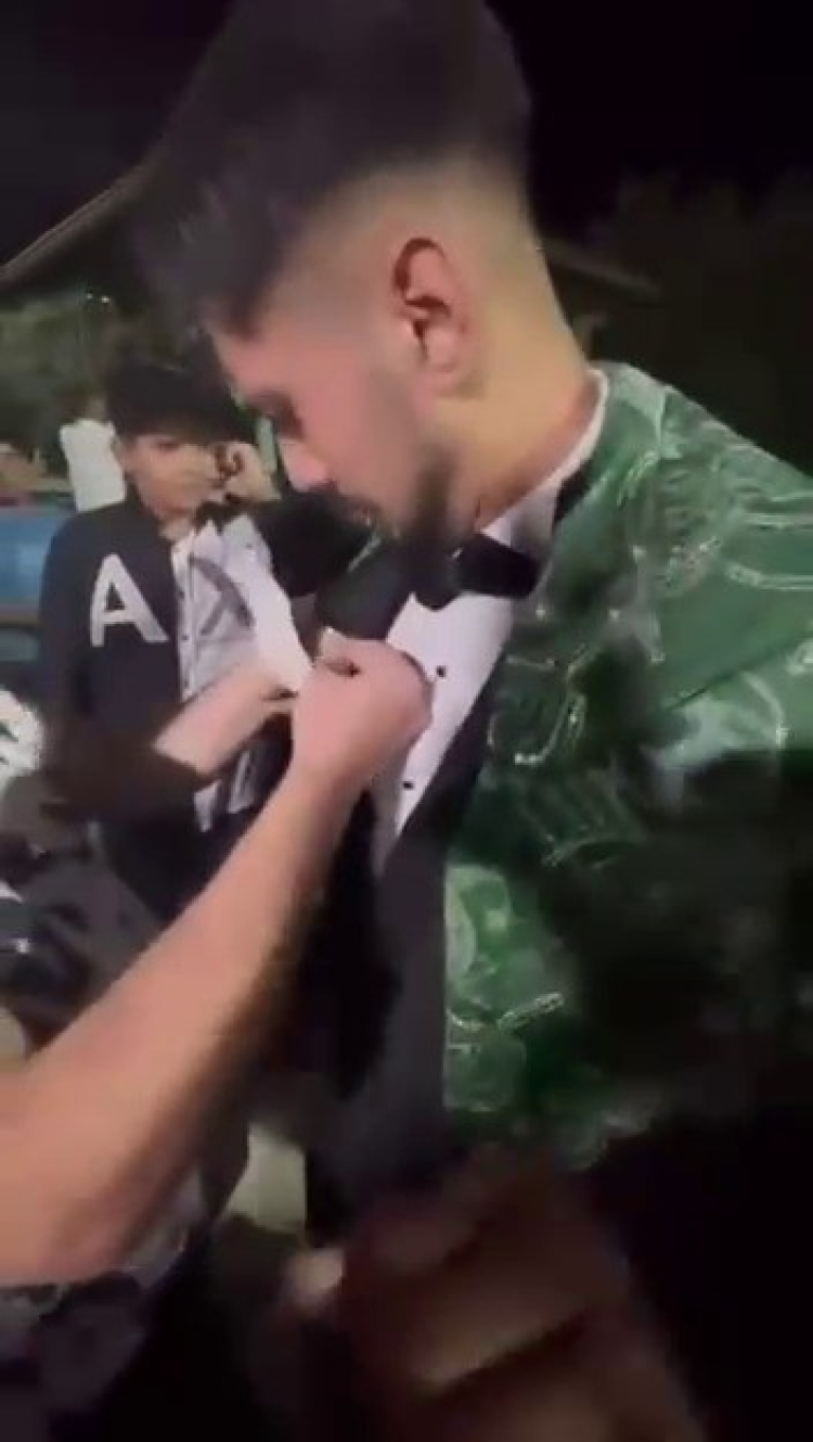 Salonda kısa süreli şaşkınlık yaşanırken, davetliler o anlar cep telefonlarıyla görüntüledi.