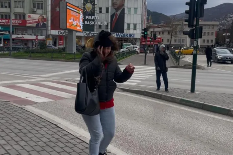 Bursa'da fırtına uçurdu...Yolda yürümekte güçlük çektiler