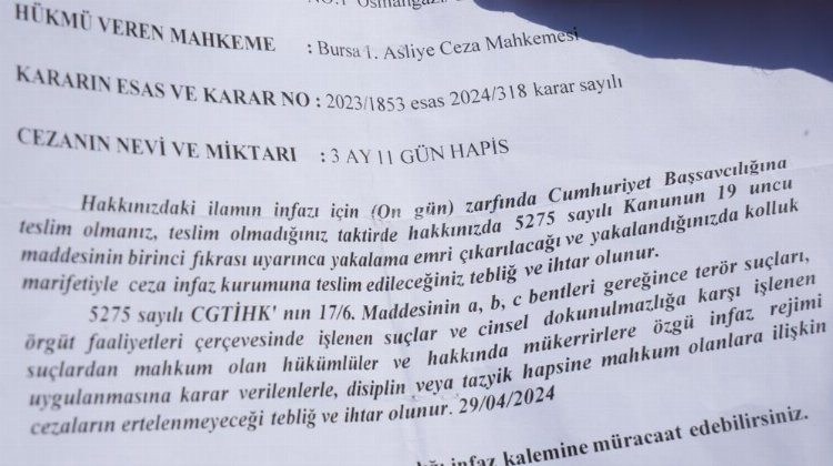 Bursa'da dedesinin cenazesinde babası tarafından bıçaklanan genç, mağdur olarak katılması gereken duruşmalara gitmeyince 3 ay 11 gün hapis cezasına çarptırıldı. Olayın mağduruyken sanık durumuna düşüp hapis cezası alan genç adam olaydan sonra adres değişikliği yapıp, annesinin yanına taşındığı için eski adrese gelen tebligatlardan haberdar olmadığını iddia etti.