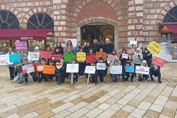 Milli Eğitim Bakanlığı tarafından yürütülen "Türkiye Selamlaşıyor" projesi kapsamında Reşitpaşa İlkokulu öğrencileri, Bursa'nın simge noktalarından Tarihi Kapalı Çarşı ve Hanlar Bölgesi'nde anlamlı bir etkinliğe imza attı.