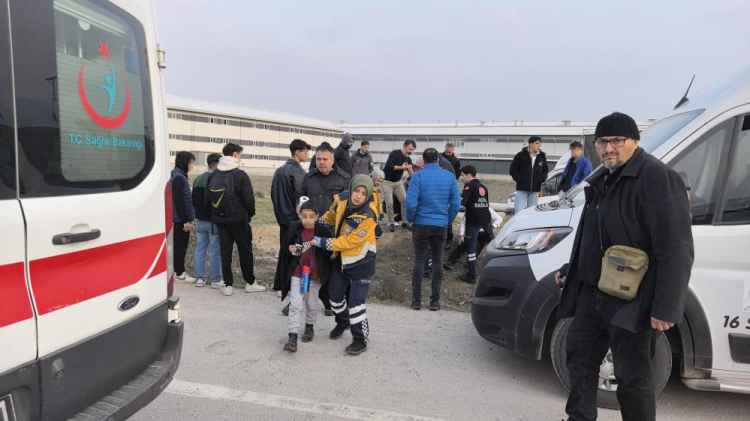 Kaza, saat 17.00 sıralarında Akhisar Mahallesi Karalar Yolu Caddesi'nde meydana geldi. Cerrah Mahallesi'ndeki özel bir ilk ve ortaokuldaki öğrencileri alan Ataman G. (56) idaresindeki Peugeot marka 16 S 7672 plakalı servis minibüsü, 'U' dönüşü yapan Nazan T. (45) idaresindeki Audi marka 16 AGA 253 plakalı otomobile yandan çarptı. Çarpmanın etkisiyle araçlar savruldu. Kazada her iki aracın sürücüleri ile servis minibüsündeki öğrenciler Elif Su T. (10), Mehmet Yusuf A. (12), Nilhan A. (7), Mehmethan G. (8), Zehra A. (8), Elif K. (7), Semih T. (30) ile rehber öğretmen Gizem A. (24) yaralandı. Kaza yerine itfaiye, sağlık ve polis ekipleri sevk edildi. Yaralılar kaza yerine sevk edilen ambulanslarla İnegöl Devlet Hastanesine kaldırıldı.