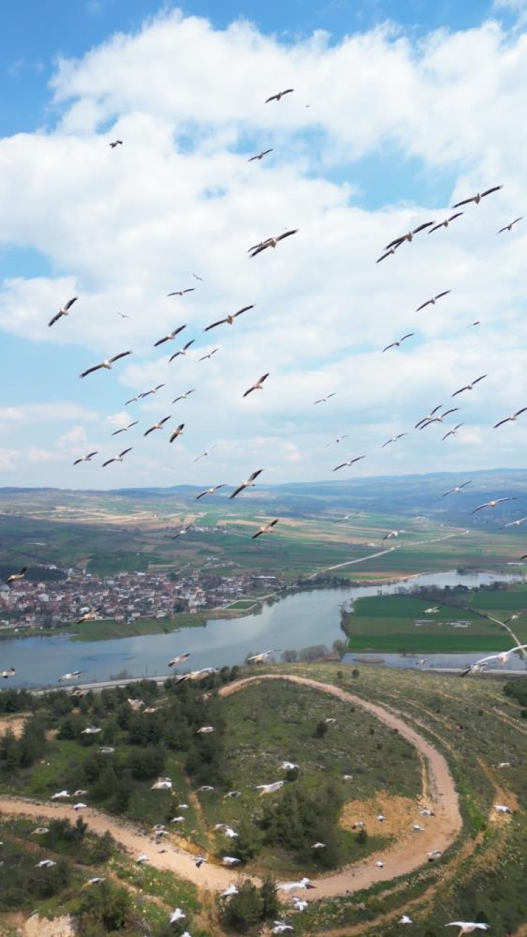 İnegöl Belediyesi Basın Halkla ilişkiler ekipleri, pelikan sürüsünü drone'la görüntüledi.
