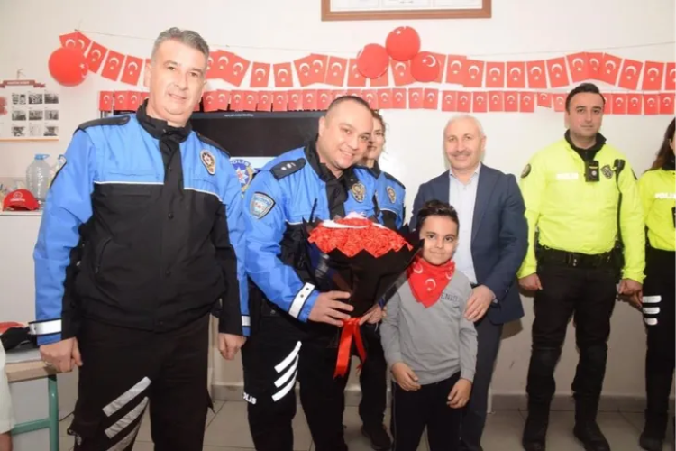 Erhan Nasyalçın İlköğretim Okulu 1/F sınıfı öğrencilerinin Emniyet Teşkilatı'na yazdığı mektup üzerine, Bursa Emniyet Müdürlüğü Toplum Destekli Polislik Şube Müdürlüğü ekipleri okulu ziyaret etti.
