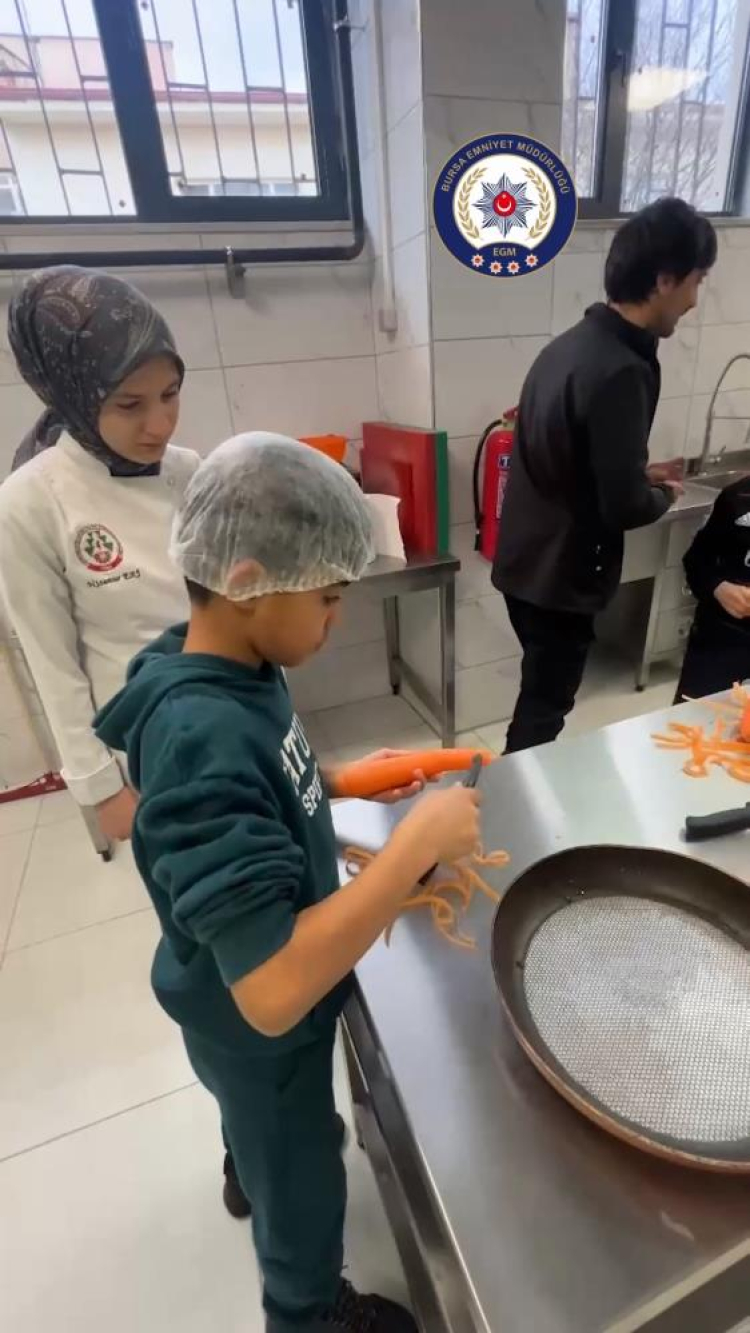 "Geleceğimiz, Çocuklarımız" vizyonu doğrultusunda düzenlenen program kapsamında 9 çocuk, İlçe Emniyet Amirliği’nde misafir edildi. Etkinlikte, Harmancık Çok Programlı Anadolu Lisesi Aşçılık Bölümü öğrencileriyle birlikte kurabiye ve meze yapımı etkinliği düzenlenirken, ilçe turu, emniyet binası tanıtımı, futbol etkinliği, belediye tesislerinde yemek programı, müzik etkinliği ve forma dağıtımı da gerçekleştirildi.