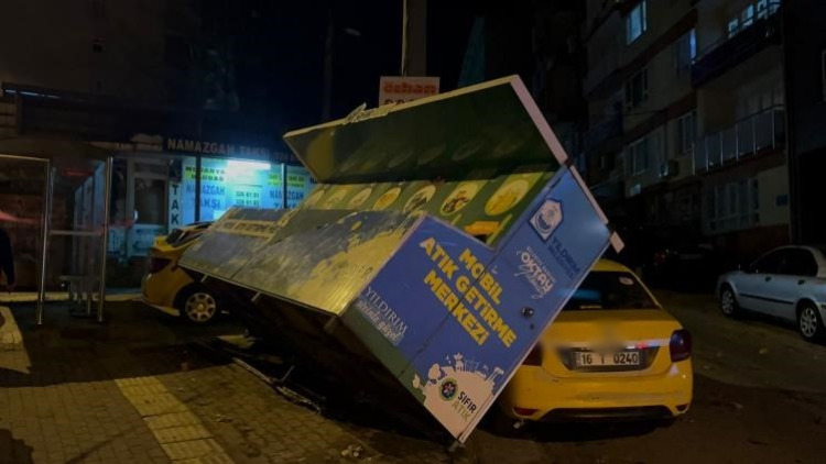 Bursa'da gece saatlerinden itibaren etkili olan şiddetli fırtına şehirde hayatı adeta felç etti. Merkez Yıldırım ilçesinde zaman zaman saatte 70 kilometre hıza ulaşan şiddetli lodos, Mimar Sinan Mahallesi Sağlık Parkı'nda ağaçları kökünden söktü. Namazgah Mahallesi'nde ise atık giysi dolabı şiddetli lodosa dayanamayarak taksinin üzerine devrildi. Mimar Sinan Mahallesi Emniyet Caddesi üzerinde bulunan otobüs durağını yerinden sökerek devirirken, 152 Evler Mahallesi'nde ise 8 katlı apartmanın 6'ncı katında bulunan cam balkon rüzgarın etkisine dayanamayarak koptu. İtfaiye ekipleri gece boyunca aralıksız çalıştı.