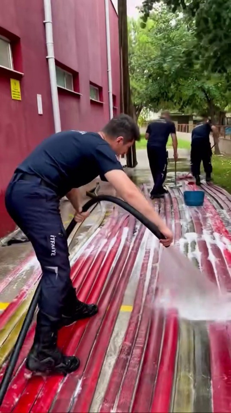 İtfaiyecilerin kendi elleriyle gerçekleştirdiği temizlik çalışması sosyal medyada da paylaşılırken, vatandaşlardan da büyük beğeni topladı.
