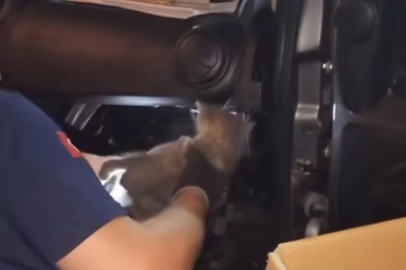 Bursa'da itfaiye ekipleri aracın motor kısmına giren yavru kediyi kurtarmak için 2 saat uğraştı. Operasyon sonrası aracın sahibi yavru kediyi sahiplendi.