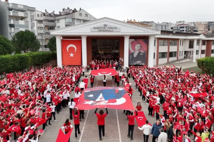 Milli Eğitim Bakanlığı’nın talimatı ve Türkiye Yüzyılı Maarif Modeli vizyonu doğrultusunda düzenlenen "İlk Derste Bayrak Sevgisi" temalı etkinlikte, okul bahçesi kırmızı-beyaz renklere büründü. Etkinlik kapsamında bin öğrenci, ellerinde bin Türk bayrağıyla okul bahçesinde bir araya geldi. Öğrencilerin aynı anda bayraklarını açmasıyla oluşan görüntü, görsel bir şölen oluştururken, etkinlik duygu dolu anlara sahne oldu.