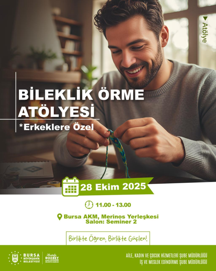 Bursa Büyükşehir Belediyesi Sosyal Hizmetler Dairesi Başkanlığı Aile, Kadın ve Çocuk Hizmetleri Şube Müdürlüğü tarafından 25 Kasım Kadına Yönelik Şiddete Karşı Uluslararası Mücadele Günü kapsamında birçok eğitici atölye programı düzenleniyor.