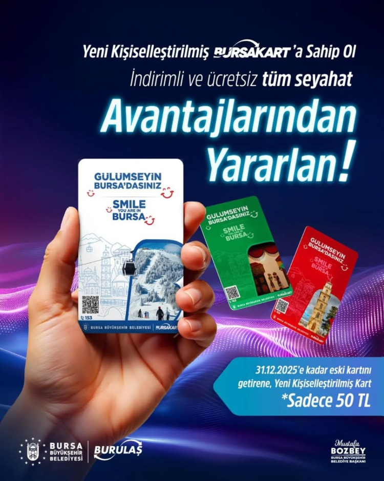 Bursa Büyükşehir Belediyesi, 2002 yılından beri kullanımda olan eski teknolojiye sahip birinci nesil BursaKartları daha sade, anlaşılır, güvenli ve çağın gereklerine uygun yeni nesil kartlarla değiştiriyor.