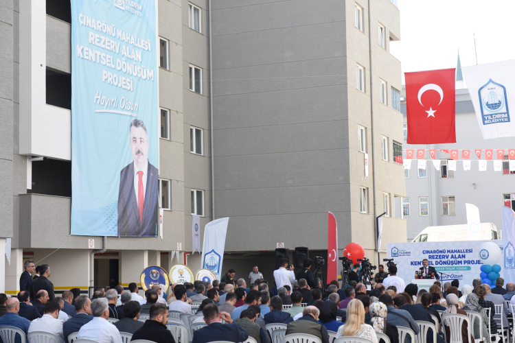 Yıldırım Belediyesi Çınarönü Mahallesi Rezerv Alan Kentsel Dönüşüm Projesi kapsamında tamamlanan konutların anahtarlarını düzenlenen törenle hak sahiplerine teslim etti.