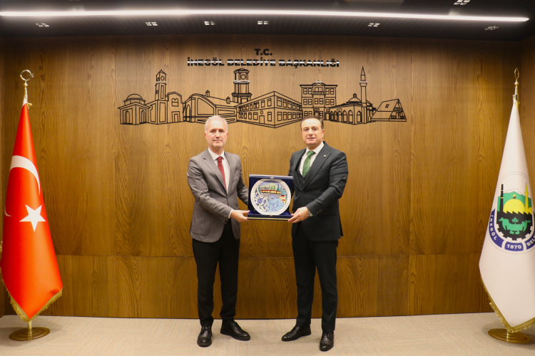 İMSİFED heyetinin gün içindeki ikinci durağı, İnegöl Belediye Başkanı Alper Taban oldu. Ziyarette, Başkan Şeref Demir federasyonun üyeleri ve paydaşlarıyla yürüttüğü ortak projeleri aktarırken, İnegöl’ün altyapı gelişimi, ulaşım avantajları ve yatırım fırsatları da ele alındı. Başkan Taban, İMSİFED, İMSİAD ve İMDER üyelerini İnegöl’e yatırım yapmaya çağırarak, İnegöl’ün büyüme hedeflerini birlikte gerçekleştirmek istediklerini belirtti. Şeref Demir ise, “Federasyon olarak yalnızca yatırım süreçlerinde değil, kentsel dönüşüm, altyapı projeleri ve sürdürülebilir kalkınma alanlarında da yerel paydaşlarla birlikte hareket etmeyi önemsiyoruz. İlçenin potansiyelini en verimli şekilde değerlendirmek ve İnegöl’e değer katmak için her türlü iş birliğine açığız” dedi. Ziyaret sonunda İMSİFED ve İMSİAD YKB. Şeref Demir, İnegöl Belediye Başkanı Alper Taban’a teşekkür plaketini takdim etti.
