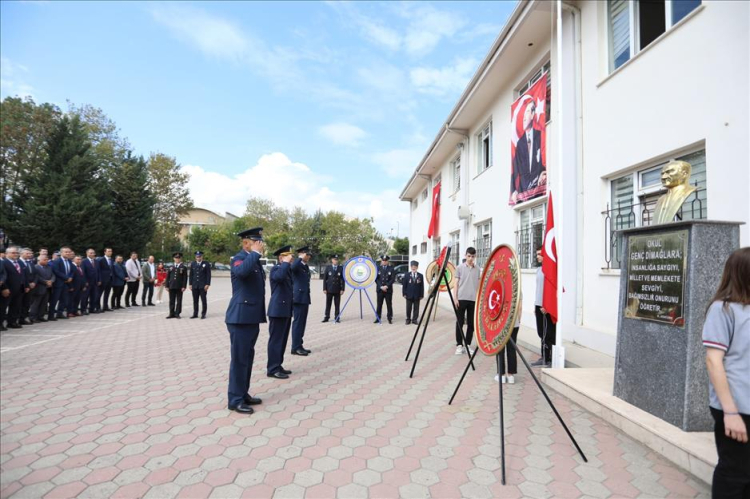 Bugün 10.30’da başlayan törenler Küçükçalık Anadolu Lisesi bahçesinde gerçekleştirildi. Törene; İnegöl Kaymakamı Eren Arslan, Belediye Başkanı Alper Taban, Garnizon Komutanı Binbaşı Ramazan Doğan, Cumhuriyet Başsavcısı Veli Ecir, İnegöl Muharip Gaziler Derneği Başkanı Selami Seymen ve gaziler, siyasi parti Başkan ve yöneticileri ile kurum ve kuruluşların temsilcileri katıldı. Çelenk sunumuyla başlayan törende sırasıyla Kaymakamlık çelengi, Garnizon Komutanlığı çelengi, Belediye Başkanlığı çelengi ve İnegöl Muharip Gaziler Derneği çelengi anıta bırakıldı. Ardından saygı duruşu ve İstiklal Marşı’nın okunmasıyla devam eden törende, günün anlam ve önemini belirten konuşmayı ise İnegöl Muharip Gaziler Derneği Başkanı Selami Seymen yaptı.