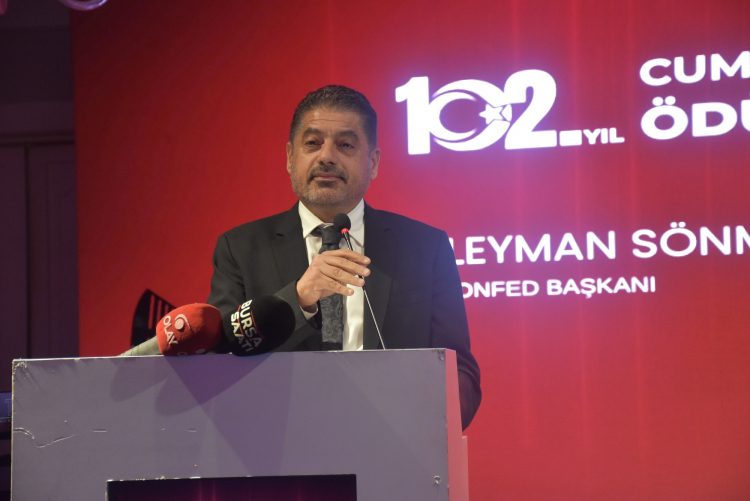 TÜRKONFED Yönetim Kurulu Başkanı Süleyman Sönmez ise görkemli programdan dolayı MARSİFED’i kutlayarak başladığı konuşmasında, Cumhuriyet’in 102. yılını kutlamanın gururunu paylaştıklarını belirterek, Türkiye’nin kalkınma yolculuğunda sivil toplumun ve iş dünyasının kritik bir role sahip olduğunu vurguladı. Başkan Sönmez, “Bugün, bağımsızlığımızın ve hür irademizin sembolü olan Cumhuriyetimizin 102’nci yaşını kutluyoruz. Hikayesi savaşlarla yazılan bir çağın dönüm noktasında, yorgun ama inançlı bir millete onurunu, umudunu ve azmini yeniden teslim eden bir devrimi anıyoruz. Cumhuriyet, bir irade, bir ahlak ve bir yaşam biçimidir; pusulamız ve ilham kaynağımız olmayı sürdürüyor. Bu armağanı bizlere veren Ulu Önder Mustafa Kemal Atatürk ve silah arkadaşlarını her daim minnetle anıyor, onların bıraktığı mirası işlerimizde, yaşantımızda ve inançlarımızda yaşatıyoruz” dedi.