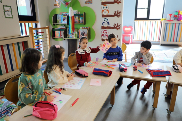 Aileleriyle birlikte mektuplar yazan ve sınıflarında duygularını resimlere döken çocuklar, depremden etkilenen yaşıtları için ev ve oyun parkı dileğinde bulundu. Sevgilerini, gülümseyen kalp ağaçlarıyla resmeden miniklerin bu anlamlı mesajları, Hatay’daki çocuklara moral olması için oyuncak kolilerine yerleştirildi.