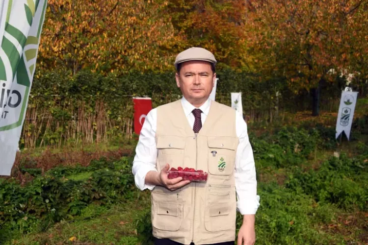 Osmangazi Belediye Başkanı Erkan Aydın, daha sonra ahududuları toplayarak, emeği geçen çiftçilerle hatıra fotoğrafı çektirdi.