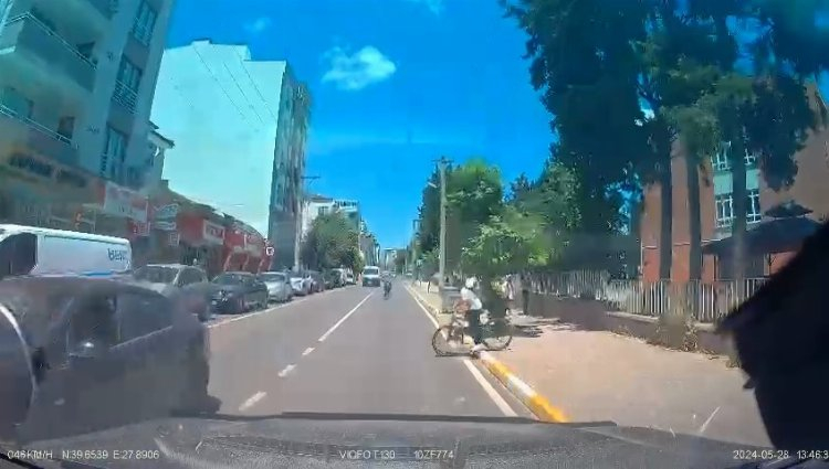 Bisikletiyle aniden yola çıkan çocuk az kalsın otomobilin altında kalıyordu. Aracın kamerasına yansıyan olayda kimse yaralanmadı, uzmanlar ise karne hediyesi olarak bisiklet alacak aileleri uyardı.