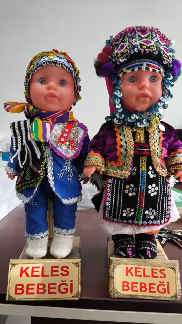 Keles Kaymakamlığı bünyesindeki Aile Destek Merkezi'nde tamamen el işçiliğiyle üretilen Keles bebekleri, uygun fiyatlarla satışa sunuluyor. Erkek ve kadın figürleri bulunan bebekler, üç farklı boyutta hazırlanırken, yöreye özgü kıyafetlerin minyatür birebir örnekleriyle dikkat çekiyor. Kıyafetlerin, geçmişte Keles yöresinde kullanılan geleneksel giysilerin aynı iplik ve süslemelerle hazırlanması ise kültürel değeri ön plana çıkarıyor.