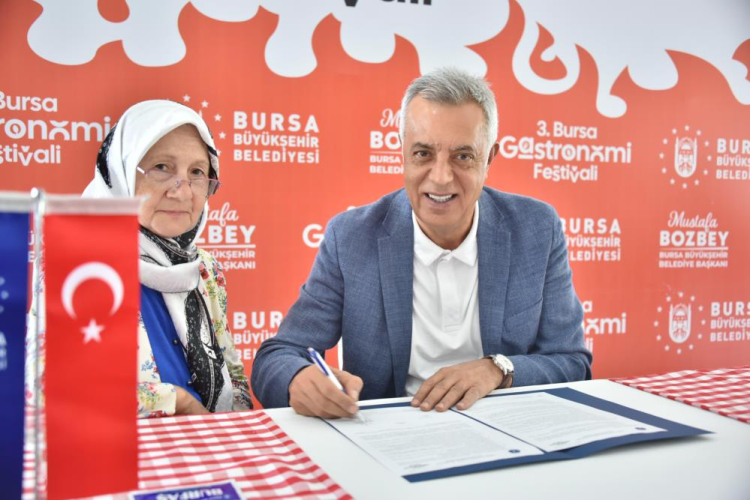 Bursa Büyükşehir Belediyesi tarafından 13-14-15 Eylül tarihlerinde Merinos Parkı'nda düzenlenecek olan 3. Bursa Gastronomi Festivali'nin heyecanı tüm kenti sardı. Bir yandan Gastronomi Tırı 17 ilçeyi gezerek Bursa'nın kendine özgü lezzetleri tanıtılırken, bir yandan da festivalin hazırlıkları tüm hızıyla sürüyor. Pek çok yeniliğin Bursalılarla buluşturacağı festivalde, üretim ve satış yapma kapasitesini elde etmiş kadın kuruluşlarını desteklemek amacıyla ‘Bursa üreten kadınlar sokağı' da oluşturulacak. Festival öncesinde Bursa Büyükşehir Belediyesi ve 41 kadın kuruluşu arasında düzenlenen törenle sözleşme imzalandı. Merinos Atatürk Kongre Kültür Merkezi'ndeki programa, Bursa Büyükşehir Belediye Başkanı Mustafa Bozbey'in eşi Seden Bozbey, Büyükşehir Belediyesi Genel Sekreter Yardımcısı Mehmet Yıldız, Dış İlişkiler Dairesi Başkanı Pınar Işıkyıldız, Kültür AŞ Genel Müdürü Yankı İçöz, belediye bürokratları, kadın dernekleri ve kooperatiflerinin üyeleri katıldı.