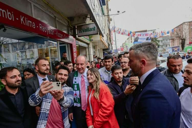 Memleket Partisi Genel Başkanı Muharrem İnce, Bursa Büyükşehir Belediye Başkan Adayı Ruşen Sever ve ilçe belediye başkan adayları ile beraber esnaf ziyaretinde bulundu. Bir süre esnaflar ile sohbet eden İnce, Mustafakemalpaşa ilçesinde basın açıklaması yaparak Bursa ziyaretini sonlandırdı.