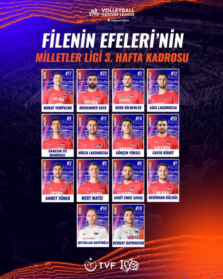 A Milli Erkek Voleybol Takımı'nın, Milletler Ligi 3. hafta kadrosu açıklandı