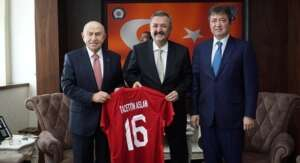 Ziraat Türkiye Kupası’nda oynanan Bursaspor-Fraport-TAV Antalyaspor maçını izlemek için Bursa’ya gelen Türkiye Futbol Federasyonu Başkanı Nihat Özdemir, şehirin önde gelen isimlerini de ziyaret etti. Özdemir, TFF Yönetim Kurulu Üyesi Mustafa Çağlar ile birlikte Bursa Valisi Yakup Canbolat, Bursa Büyükşehir Belediye Başkanı Alinur Aktaş, Bursa Cumhuriyet Başsavcısı Gökhan Şen ve Bursa İl Emniyet Müdürü Tacettin Aslan’a nezaket ziyaretlerinde bulundu.Başkan Özdemir, ziyaretlerde Vali Canbolat, Belediye Başkanı Aktaş, Cumhuriyet Başsavcısı Şen ve Emniyet Müdürü Aslan’a A Milli Takım forması takdim etti.